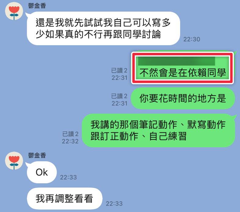 這週看到一個陪跑的孩子,作業總是滿分,但到了考試分數總會有很大的落差,幸好他在二模前加入,我們才有機會找到這個長期的問題![]()